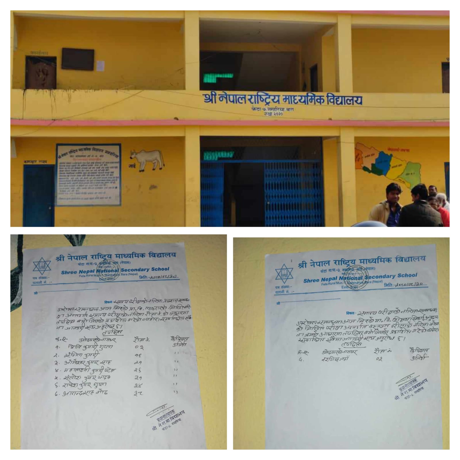 परिक्षा लिने दिन सम्म पनि बिधालय ब्यवस्थापन समितिका अध्यक्ष महम्मद हुसेन , प्रधानाध्यापक पारस प्रसाद साह र वडा अध्यक्ष पप्पु सिँहको बीचमा भागबन्डा नमिलेपछि लिखित परिक्षा नै प्रभावित भै मंसिर ३० गते शनिबार बिहान ९ :३० बजे देखि राखिएको परिक्षा जसोतसो कुरा मिलाइ दिउँसो ३ बजे मात्र सुरु भएको कुरा त्याहा उपस्थित सबैलाई प्रष्टै थाहा भएको कुरा परिक्षामा सहभागी आवेदक बारा महागढिमाइ-७ बेनौली निबासी उमेश कुमार साहले बताएका छन् ।